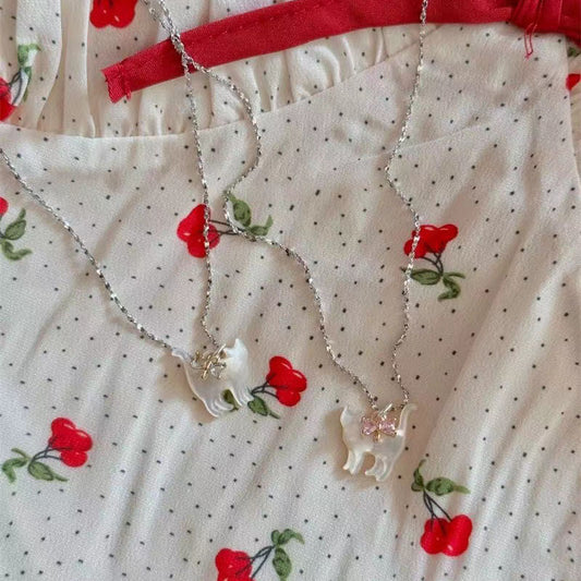 Fashion Jewelry Cute Transparent Cat Rhinestone Pendant Necklace Silver Plated Chain Women Girls Fashion Collar Necklace Party Gift